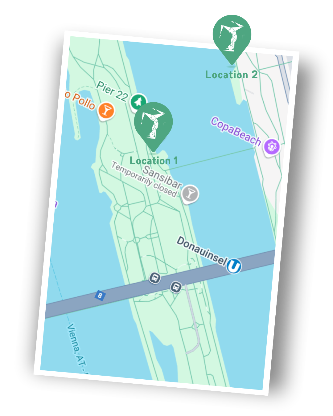 Location 1: Am Pier 22, Nähe Lokal INKA, mit Blick auf die Neue Donau
